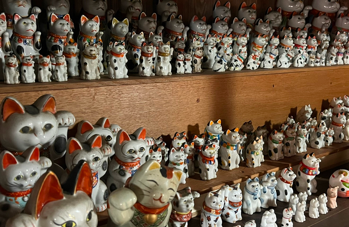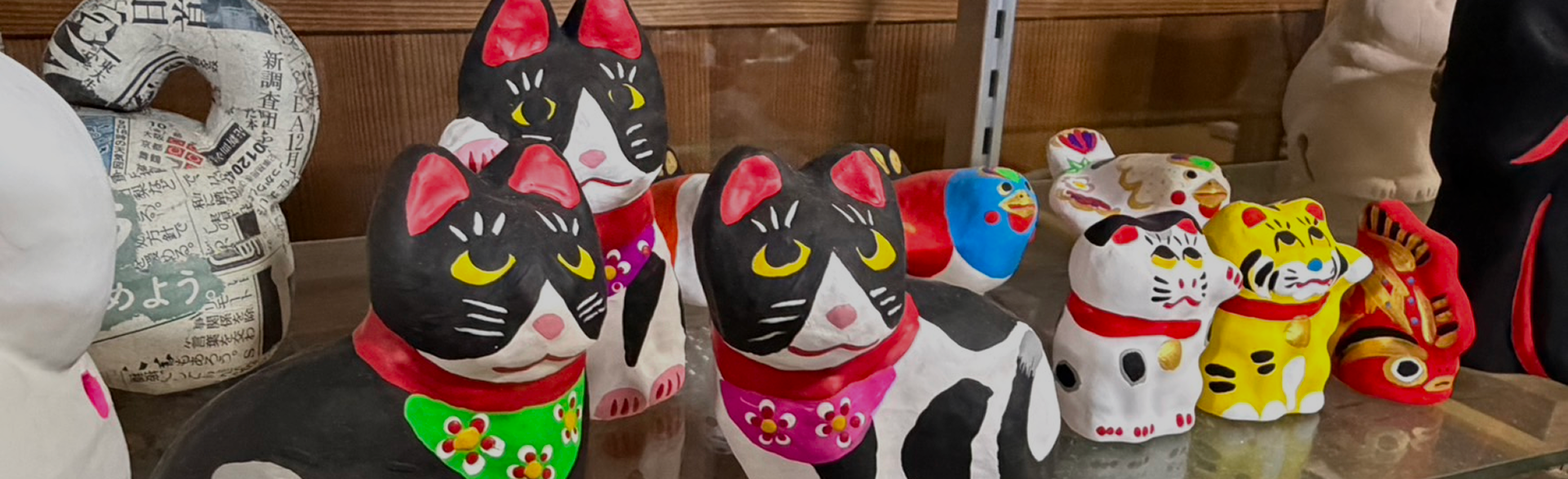 瀬戸の古猫庫のギャラリーでは、職人が手がける人形たちが静かに並びます。一体一体に込められた想いや手のぬくもりを、じっくり感じていただける場所です。